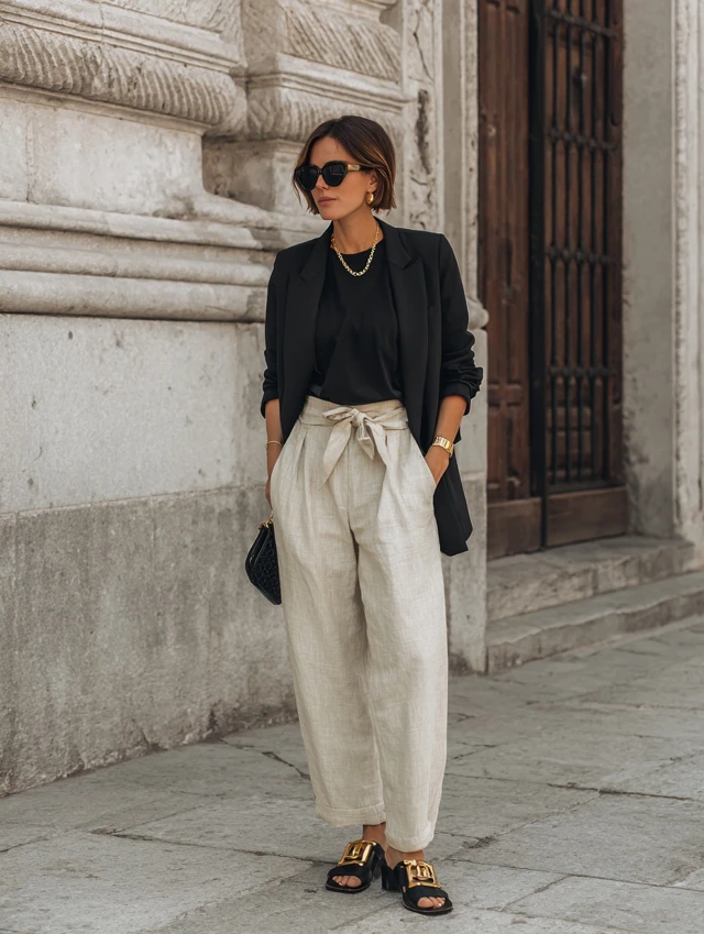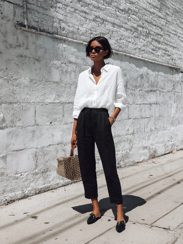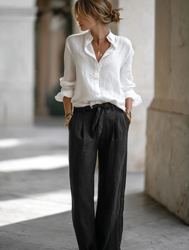 In 2025, elevated minimalism is trending — and black linen pants fit perfectly into that aesthetic. Here are five chic black linen pants outfit ideas for women that balance ease, elegance, and modern simplicity.