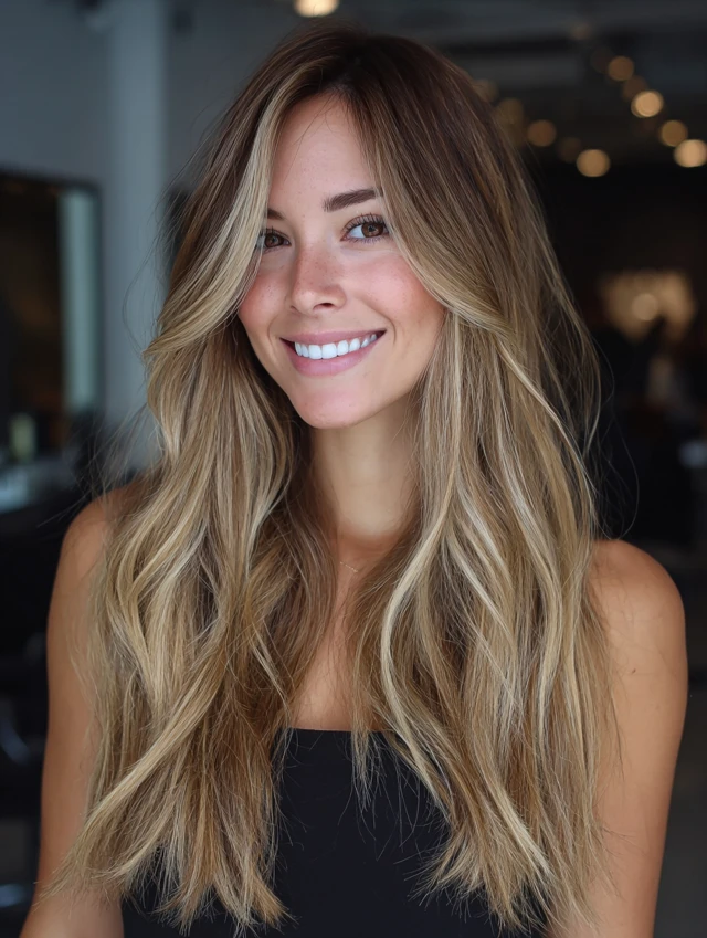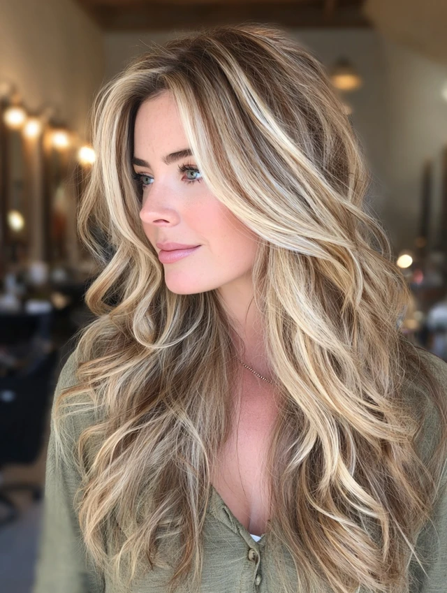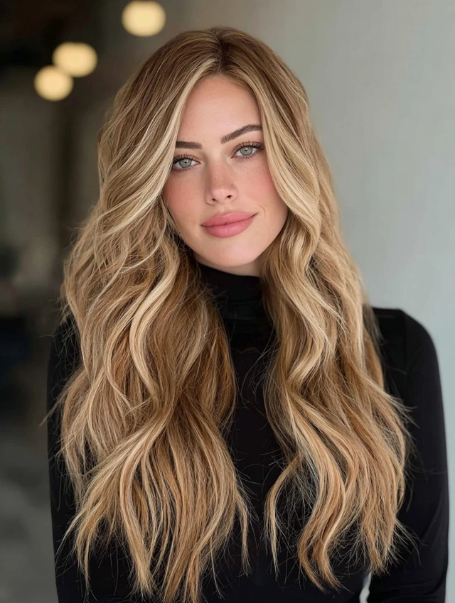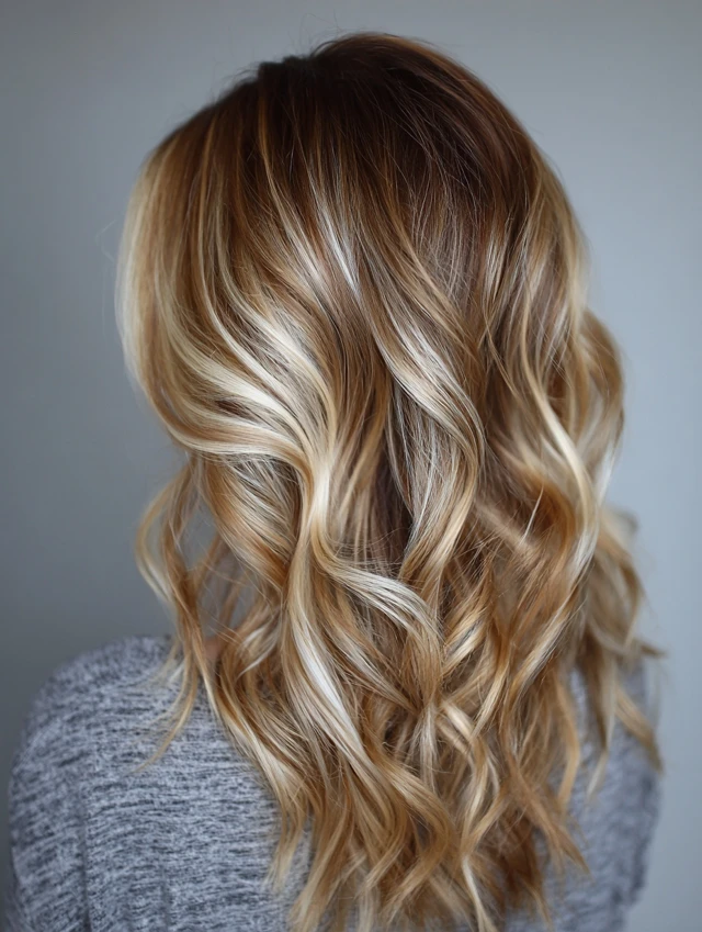 Loose waves enhance the dimension of balayage, creating a soft and natural look.