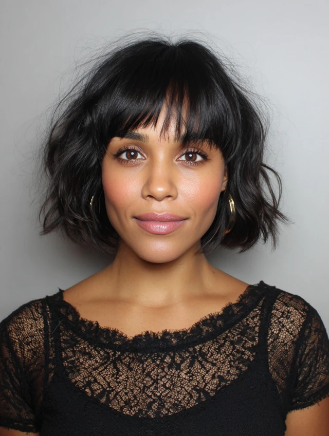 5. Textured Bob with Wispy Bangs