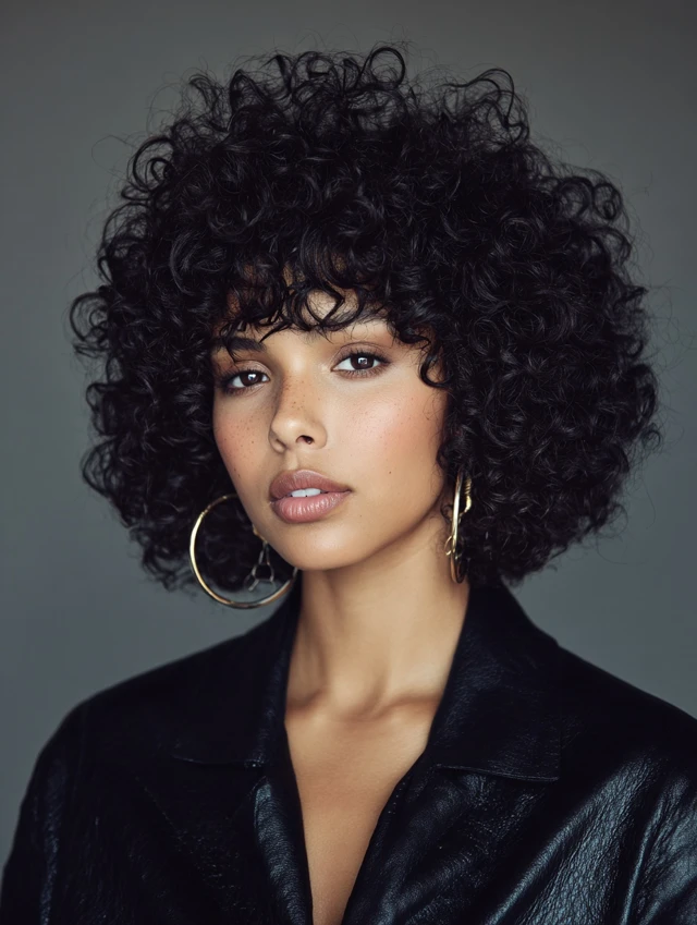 2. Curly Bob with Curly Bangs