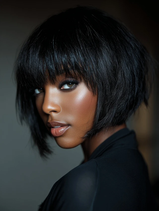 A bob with bangs is a stunning choice for Black women because it blends structure, softness, and versatility. Whether your hair is natural, relaxed, or styled with extensions, this look frames the face beautifully while offering endless styling options.