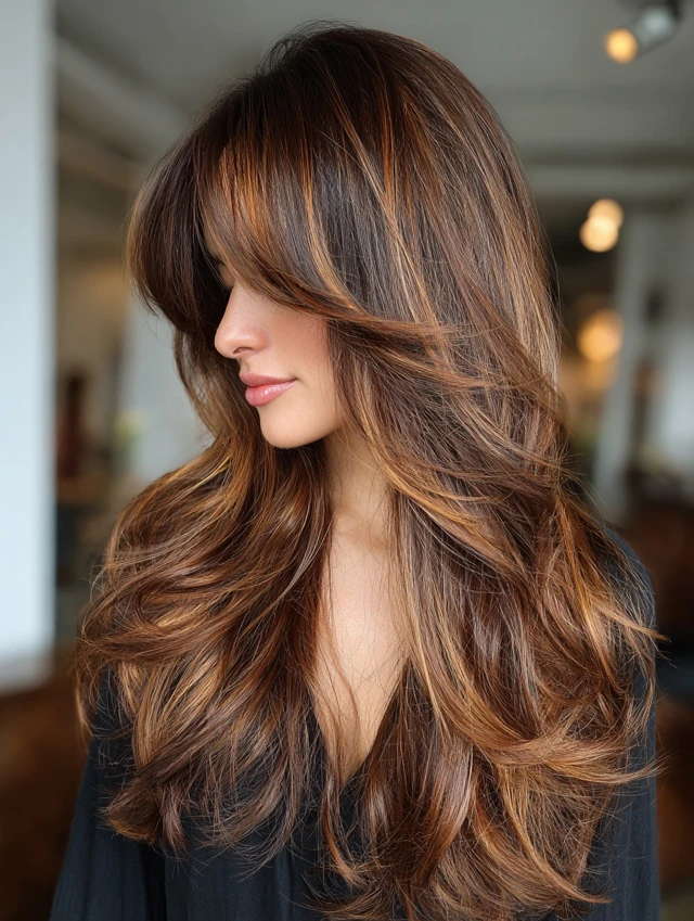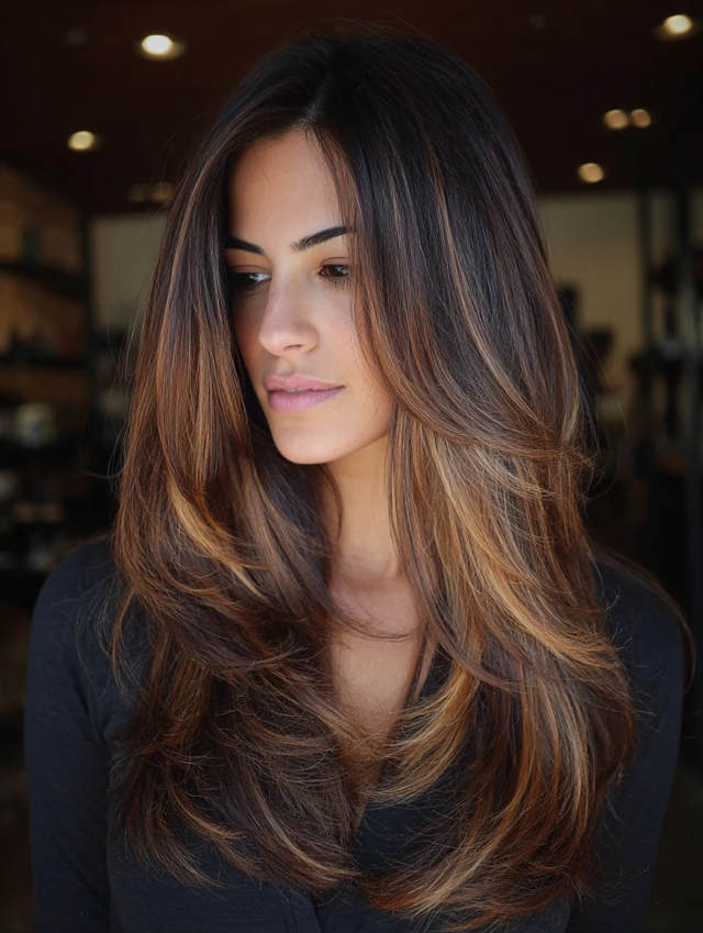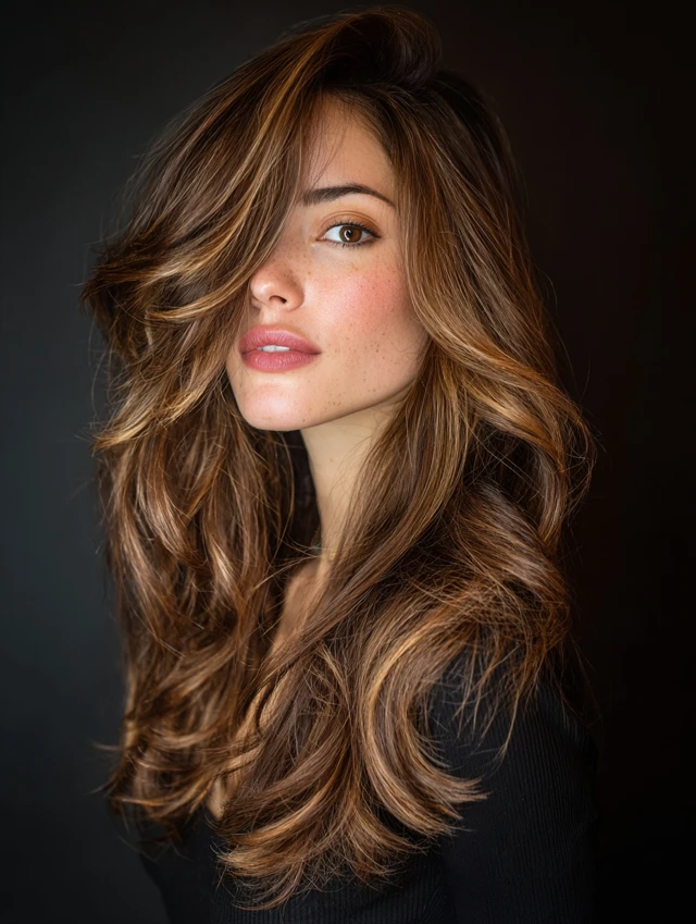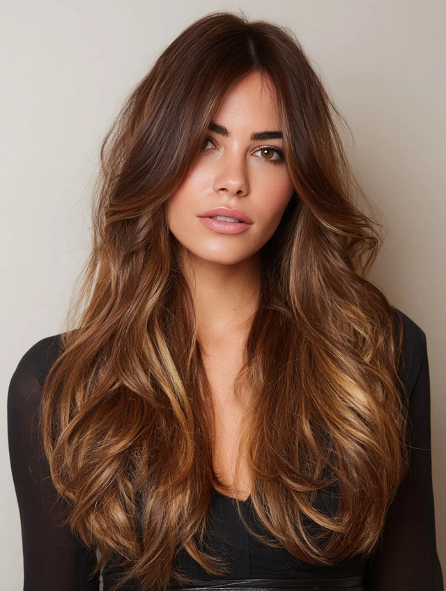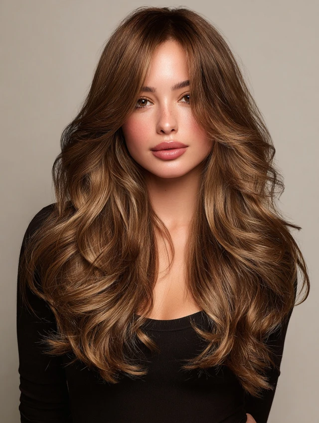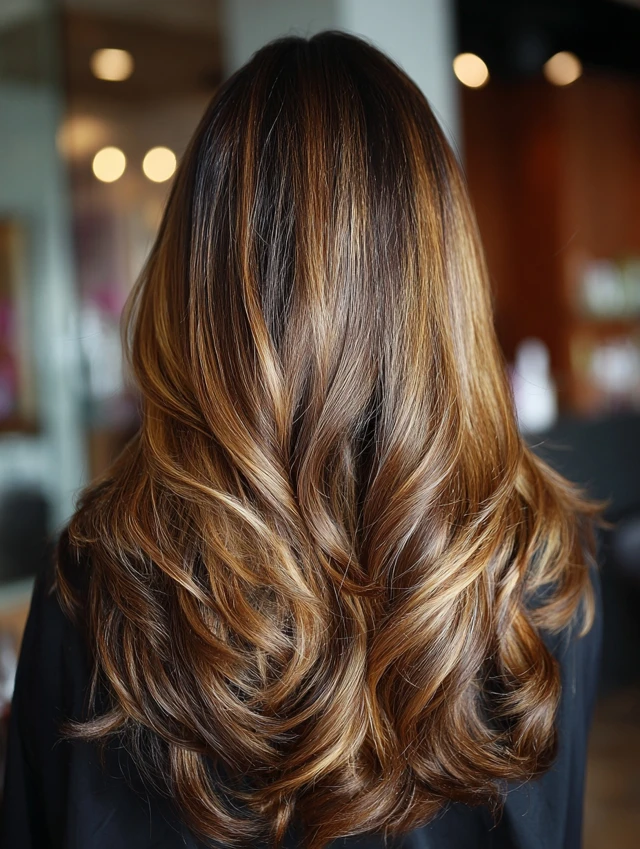 Caramel hair with brown highlights is a soft, dimensional color that combines warm caramel tones with deeper brown strands for a rich, natural finish. Instead of lightening brown hair, this look adds depth by weaving darker tones into a caramel base.
