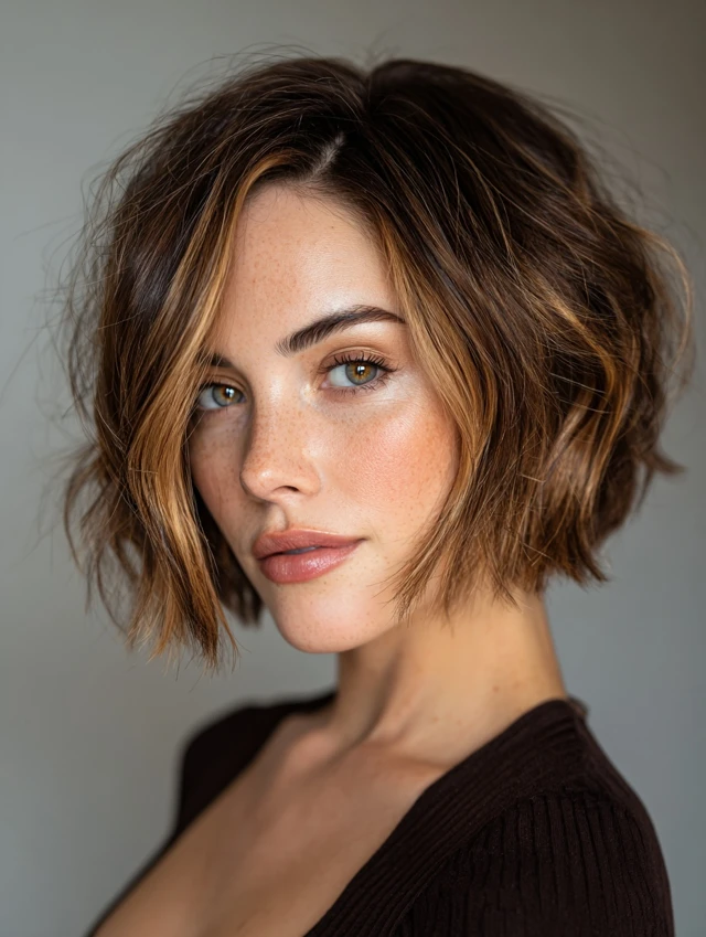Subtle lowlights or blended streaks throughout the hair.
