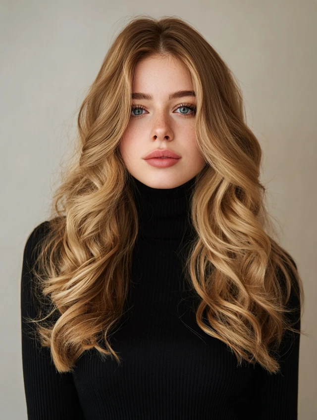 Full, dynamic hairstyle with depth.