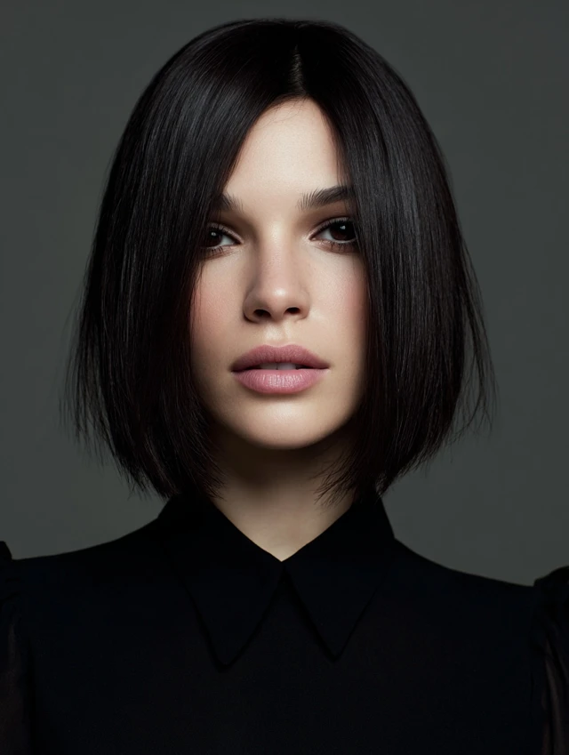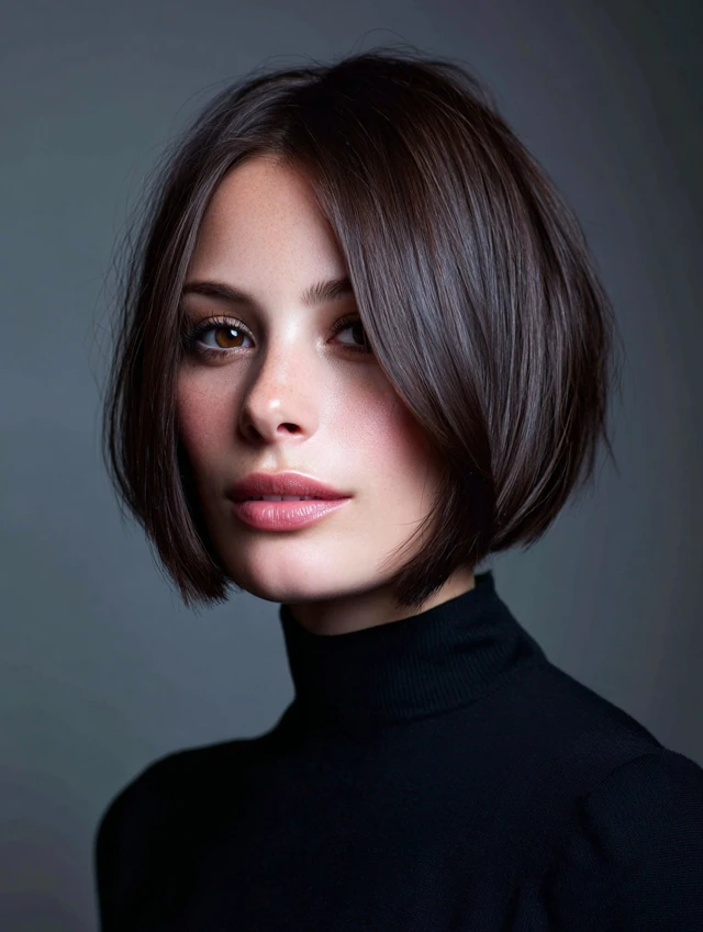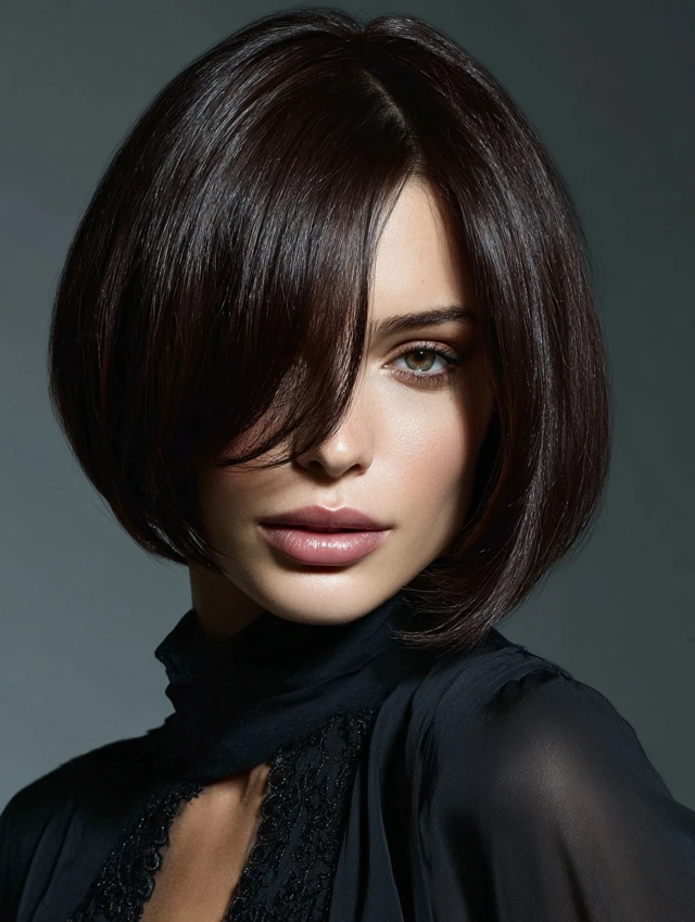 A bob cut paired with espresso color creates a sharp, modern finish.