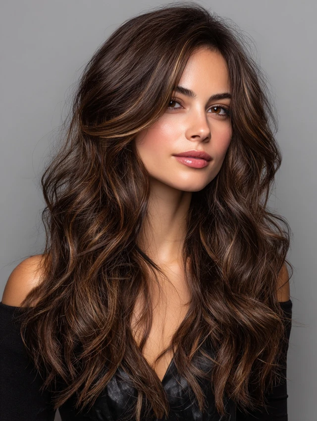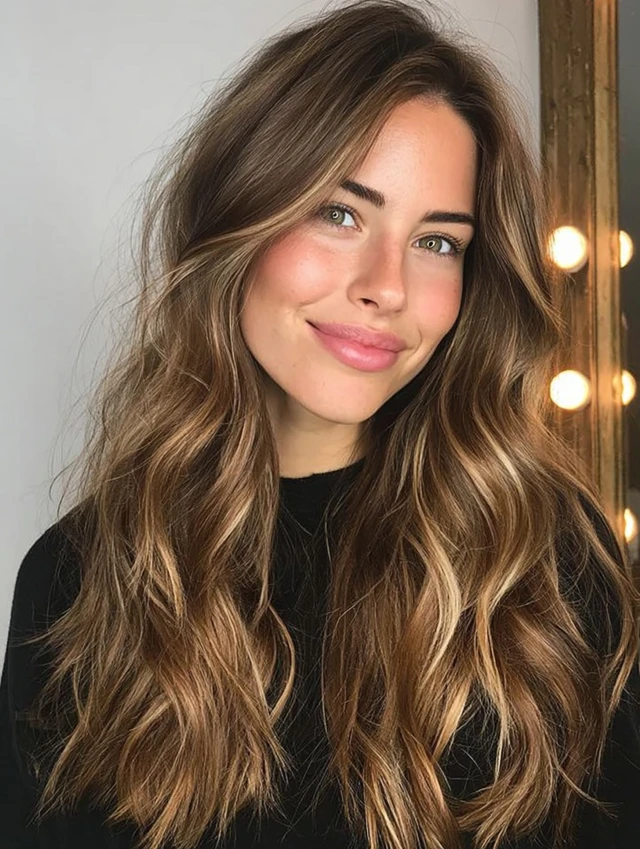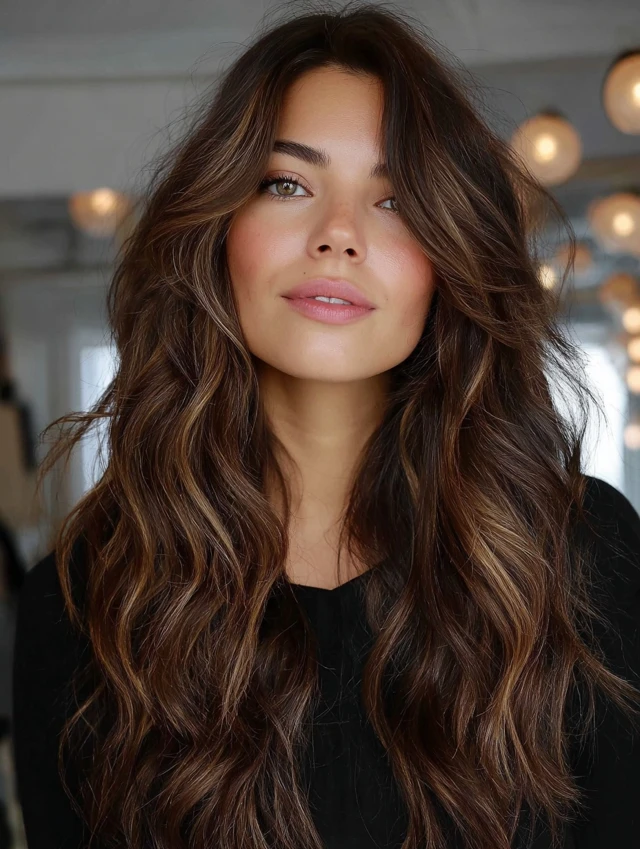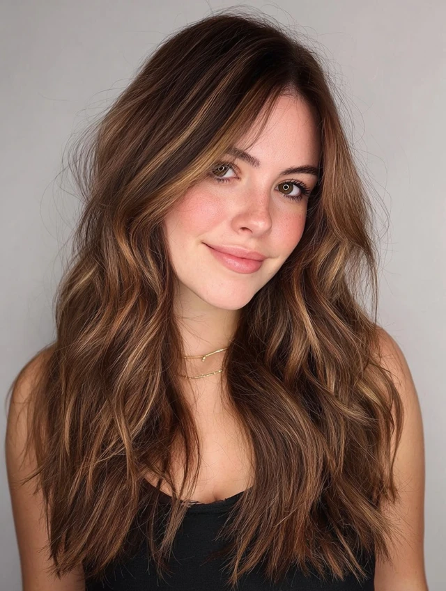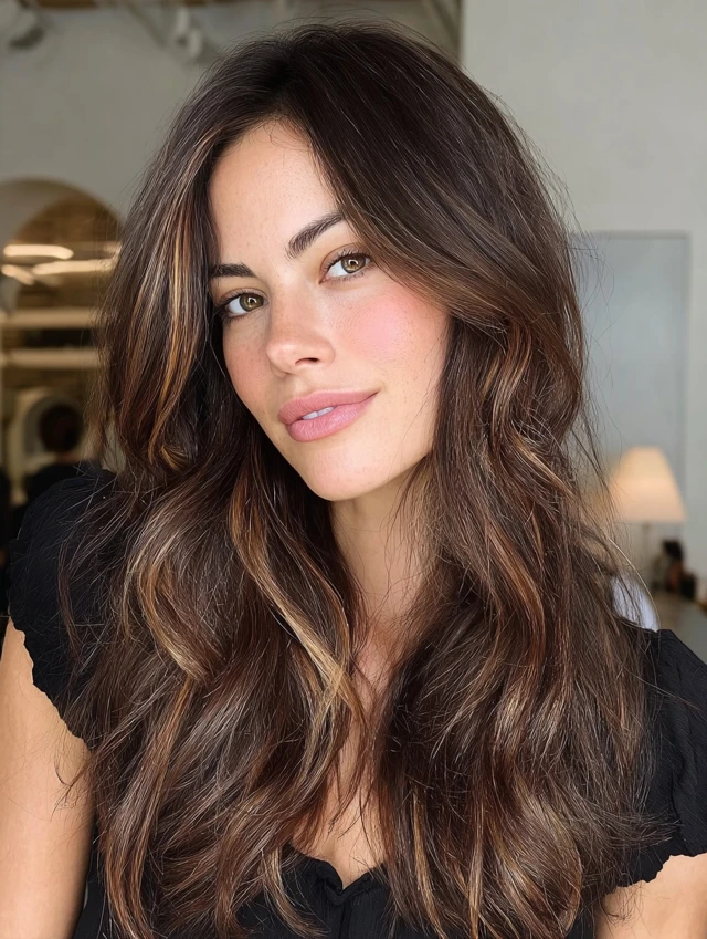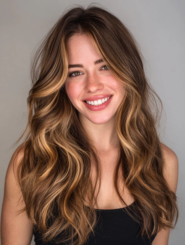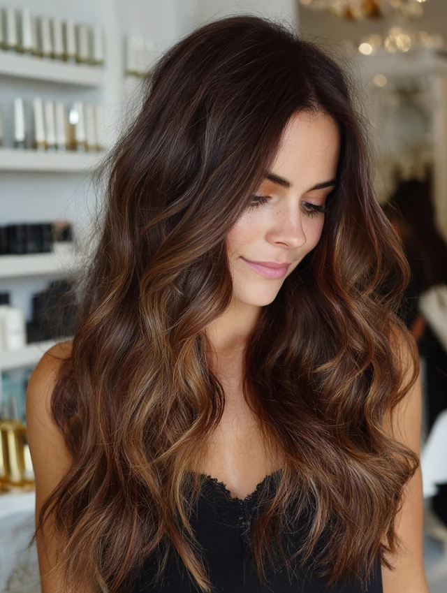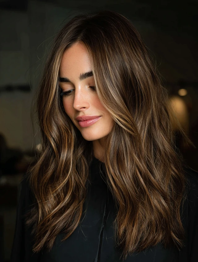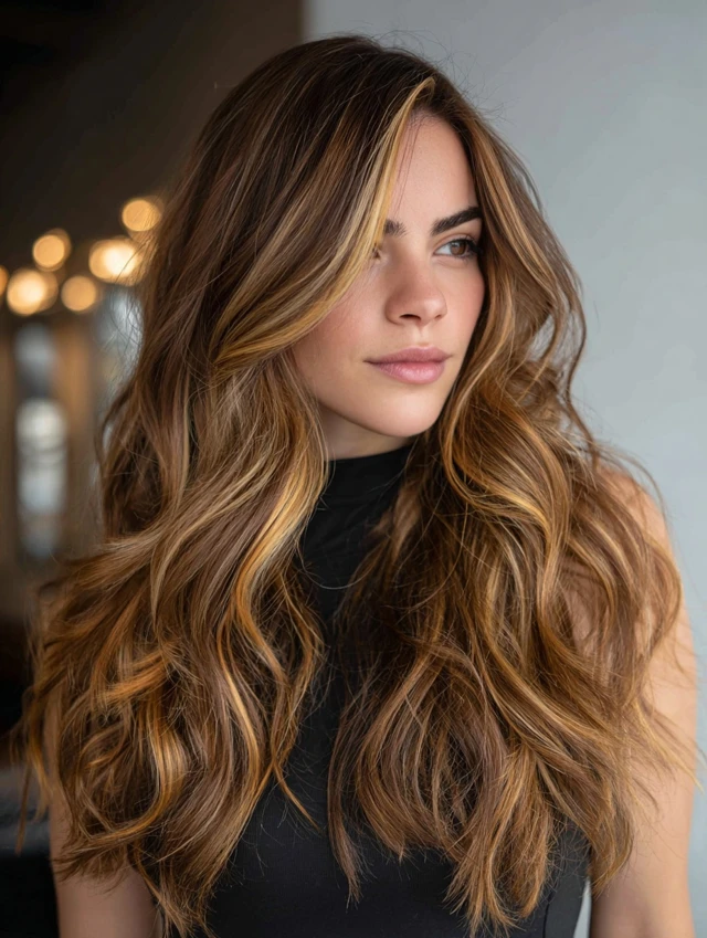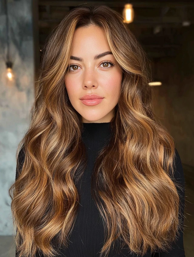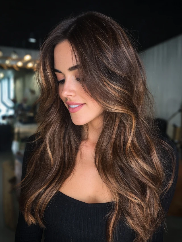 Caramel tones blend beautifully with brown hair for a warm, natural glow.