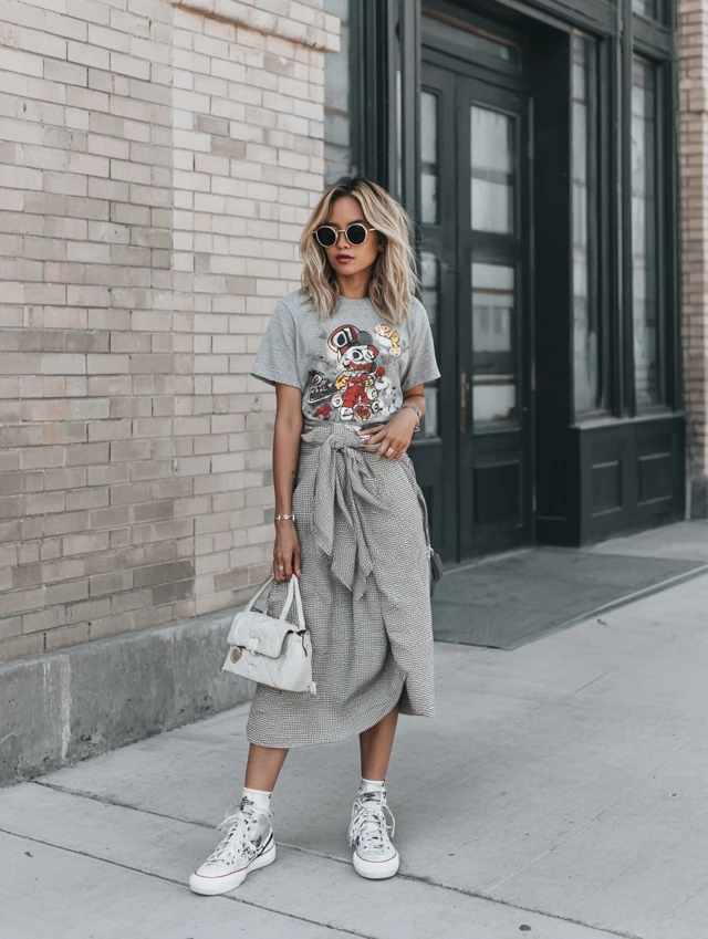 Why It Works: The perfect mix of street style and femininity — casual yet cool.