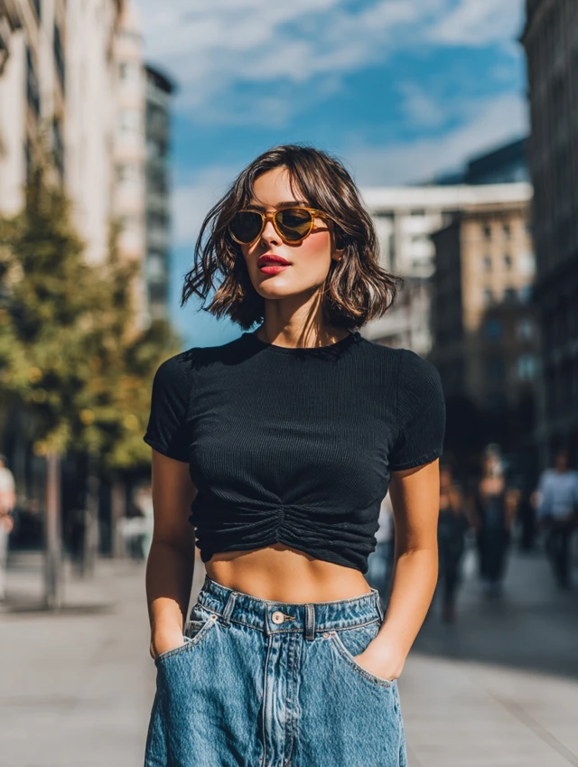 2. Cropped Jersey + High-Waisted Jeans