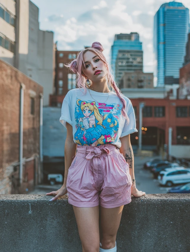 - Pick tees with cute anime prints or pastel graphics.