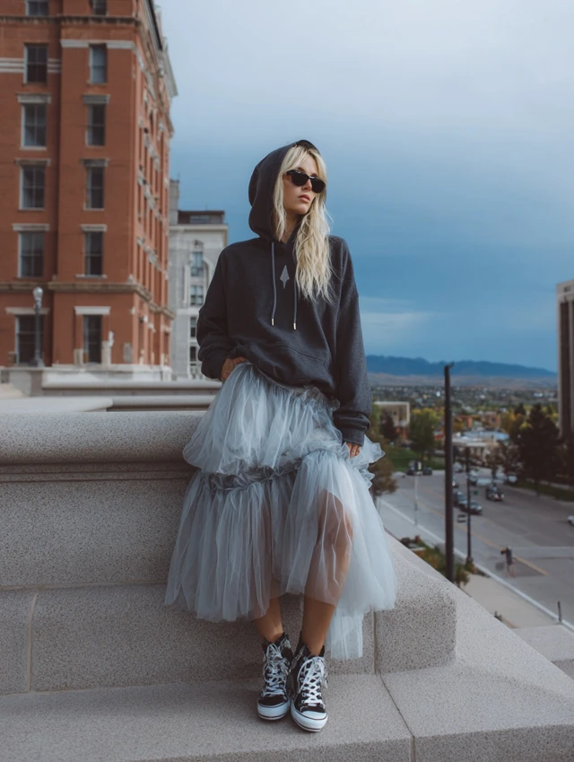 5. Layered Hoodie + Tulle Skirt