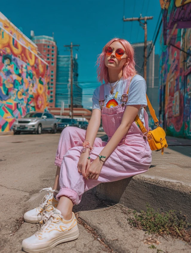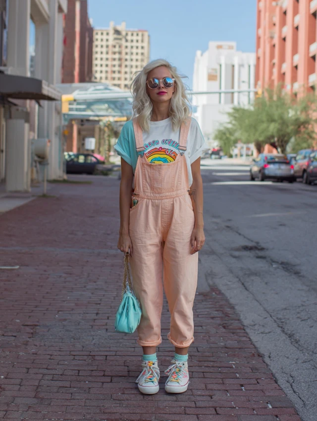 Why It Works: Overalls add childhood nostalgia, while a fun tee keeps it fresh.