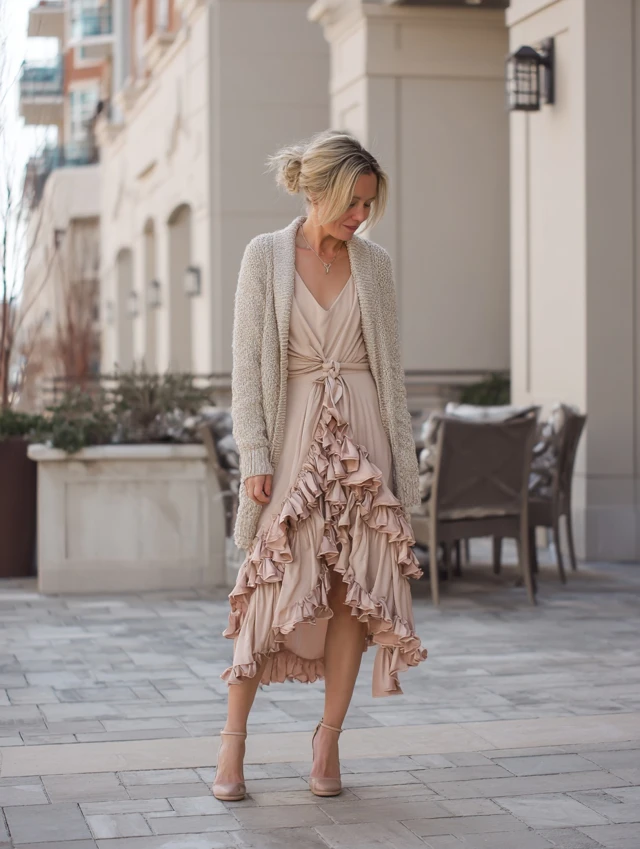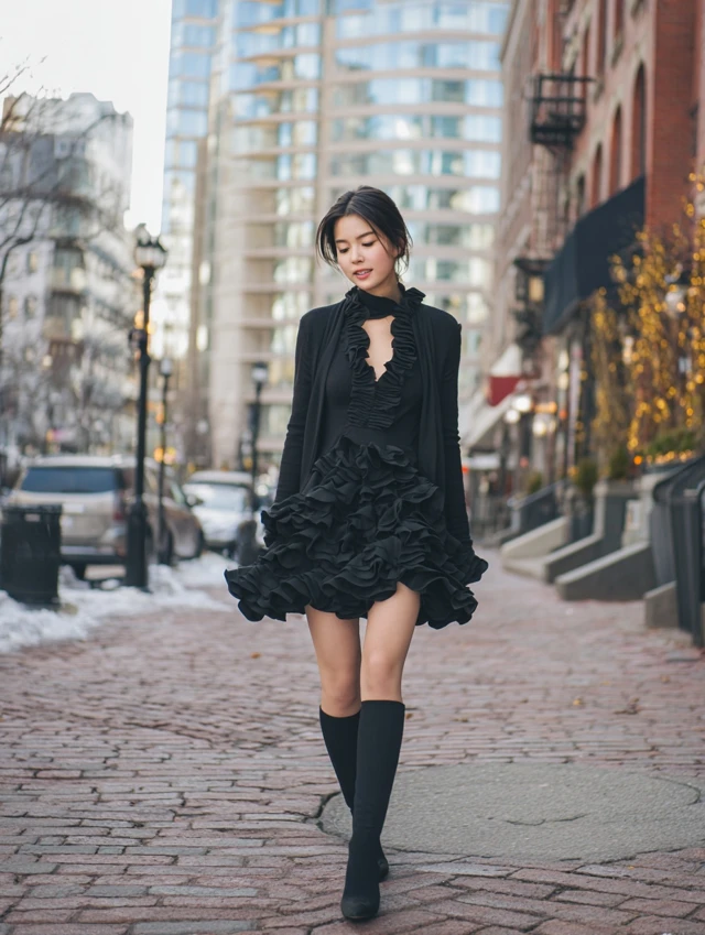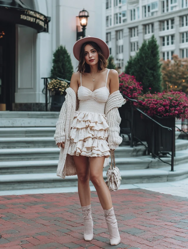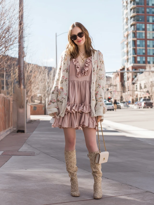 Why It Works: Dresses with frills embody kawaii essence, and cardigans make them versatile.