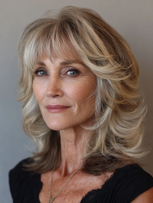 Medium hairstyles for women over 60 strike the perfect balance between length, volume, and ease of styling. This length is long enough to feel feminine and versatile, yet short enough to stay light, fresh, and easy to maintain.