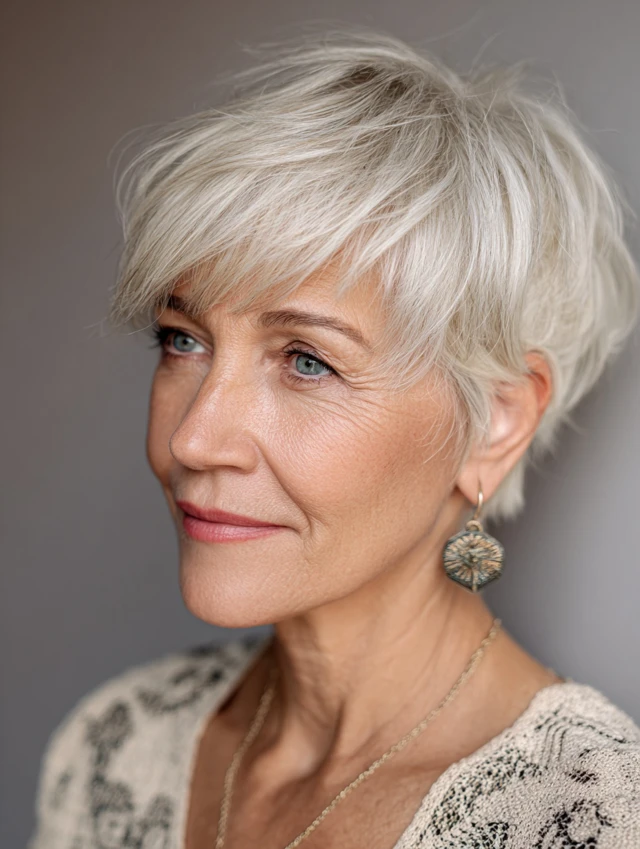 Short pixie haircuts for older women are a classic choice that combines elegance, comfort, and easy maintenance. This haircut enhances natural beauty, adds softness around the face, and gives a modern, refreshed look without needing much daily styling.