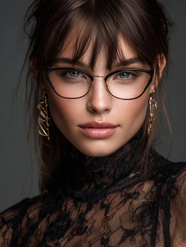 Side-swept bangs, wispy fringe, or short airy layers above the frames.